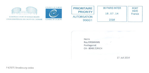 Alle Anstrengungen die angestrebte innerstaatliche Lösung herbeizuführen verblieben bis Mai 2014 ohne Ergebnis. Meine persönliche Betroffenheit geltend machend habe ich beim Europäischen Gerichtshof für Menschenrechte am 21. Mai 2014 eine ausführliche Beschwerde eingereicht. Der Entscheid für die Prüfung einer Zulässigkeitsvoraussetzung wurde nach der Einreichung auf 4-6 Wochen veranschlagt.